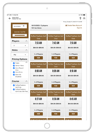 RESERVE A TEE TIME AT ANY ARCIS COURSE: Say goodbye to wait times and hello to swift bookings.